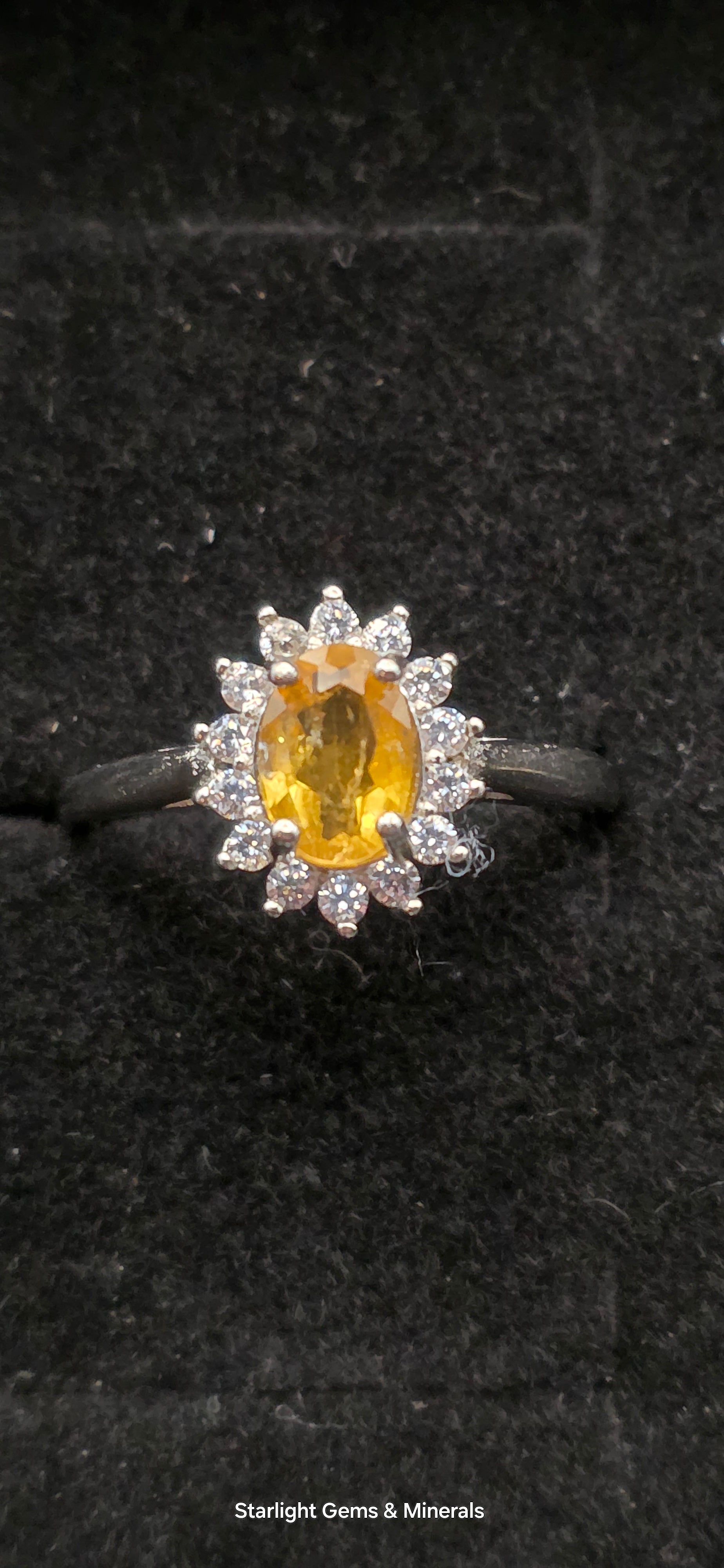 Adjustable S-925 ring setting, with beautiful natural Tourmaline center facets, surrounded by natural fine quartz facets! Absolutely stunning!