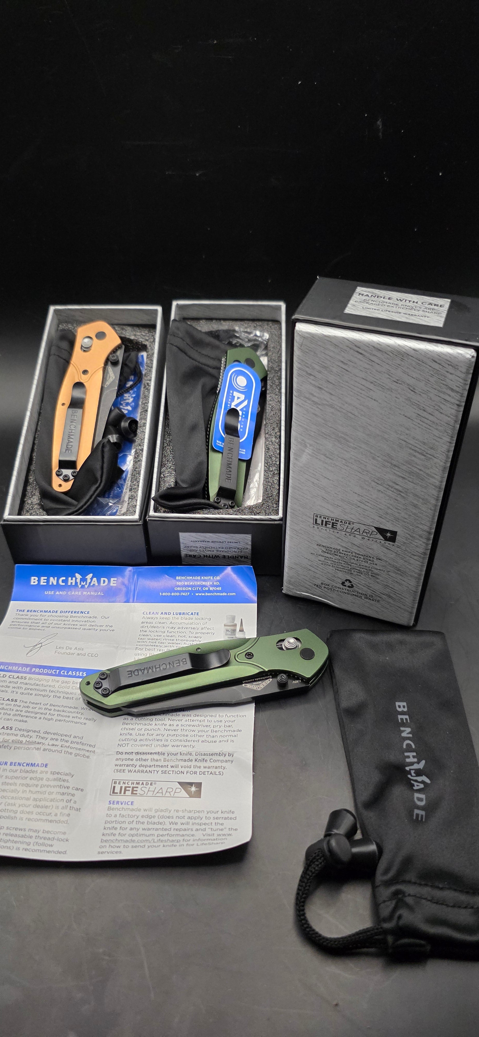 The Legendary Benchmade 940 Osborne Manual Open Pocket Knife With an Anodized Billet Aluminum Handle in Green or Black While Supplies Last