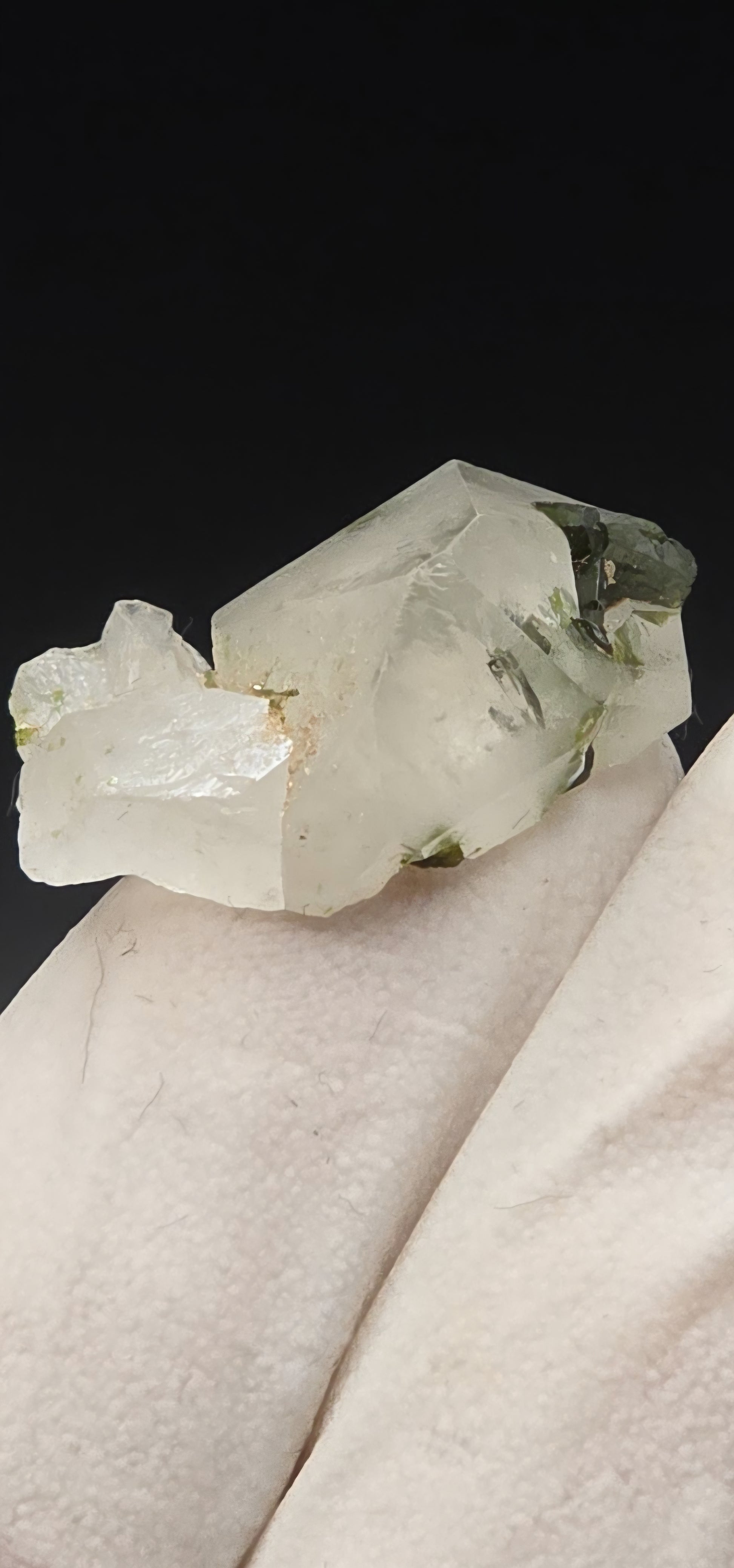A hearty button of very fine Brazilian Epidote blades with Sulfopyright, Sprite & Epidote filled Super Seven phantom Quartz!!