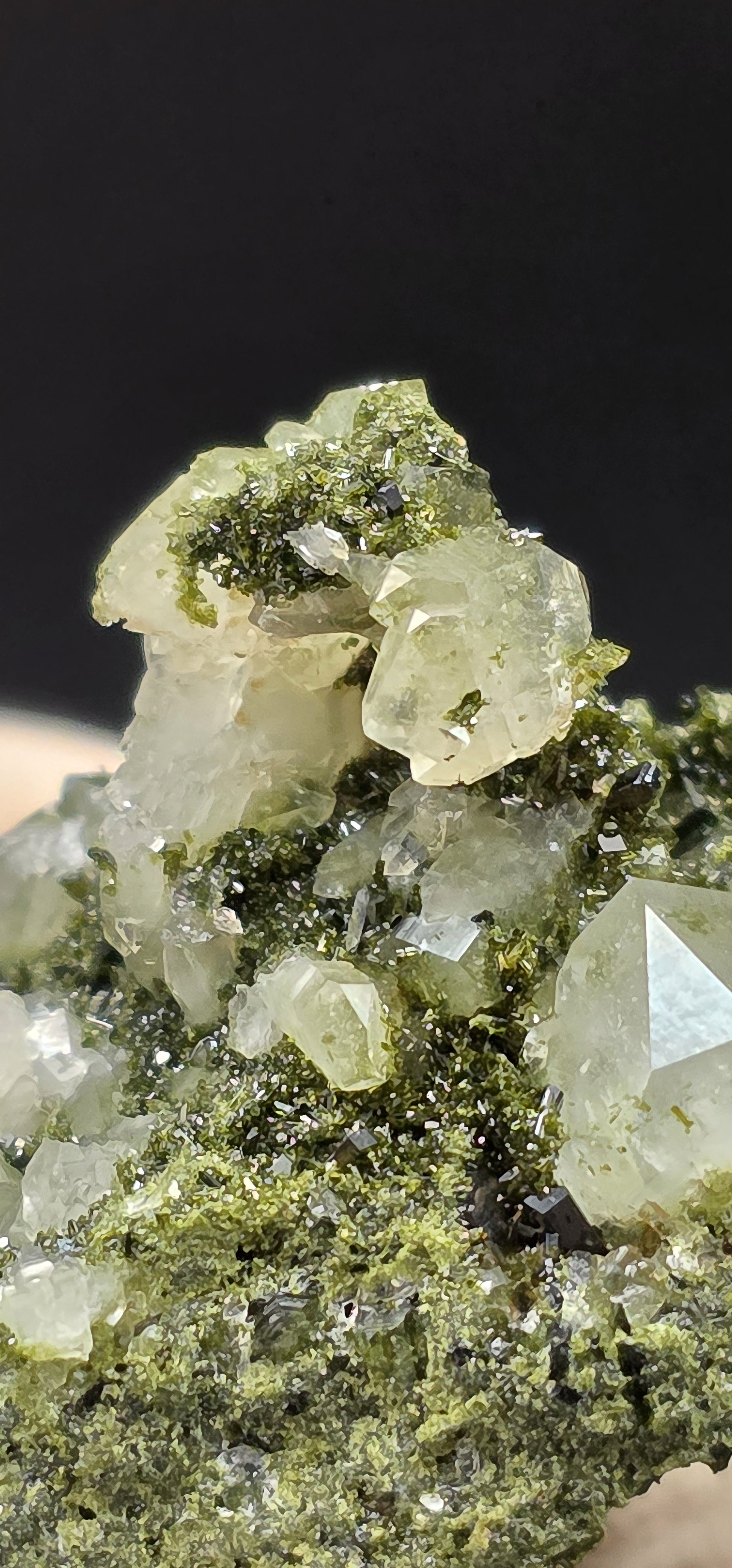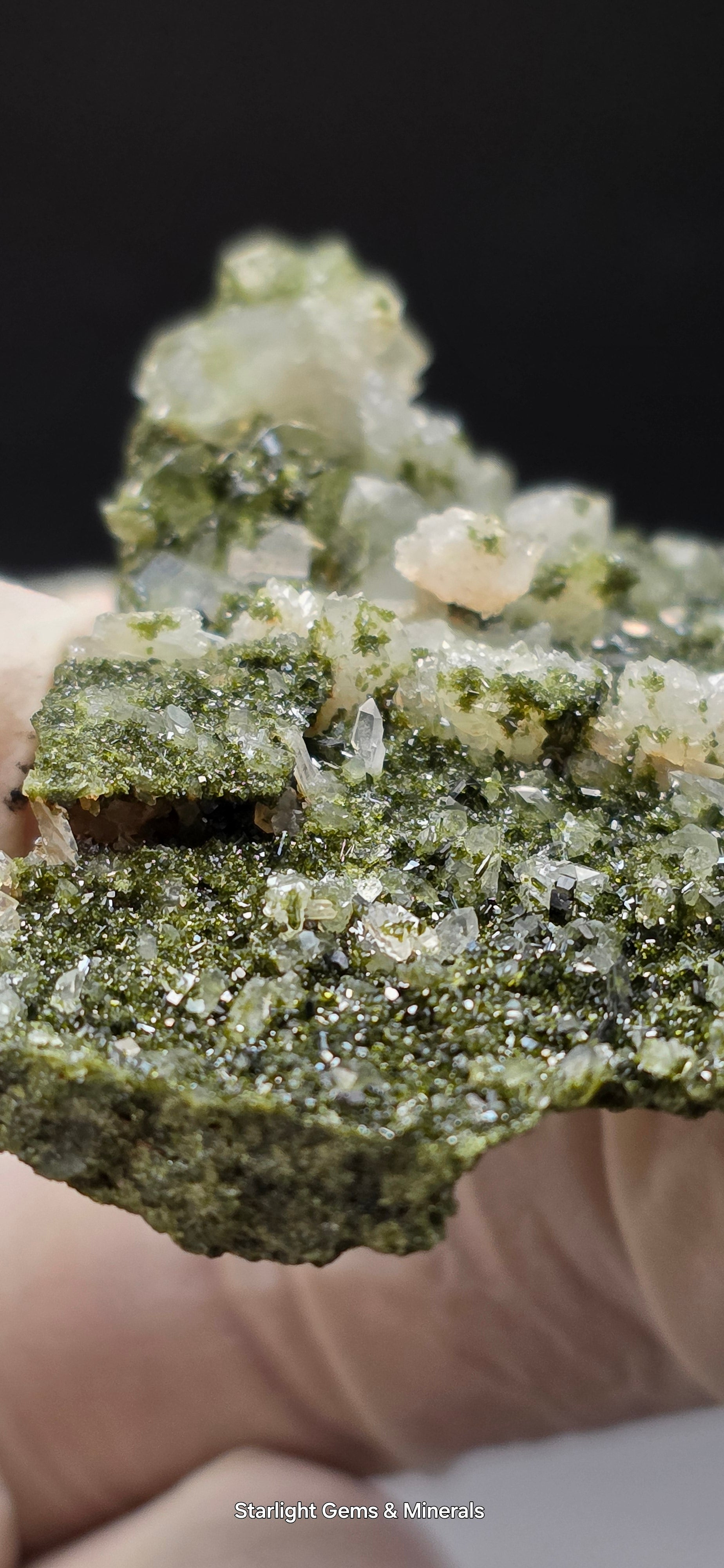 Double terminated Phantom Coderite Quartz facets, dripping in super sparkly Epidote!! DT Epidote curl and cave, omg!