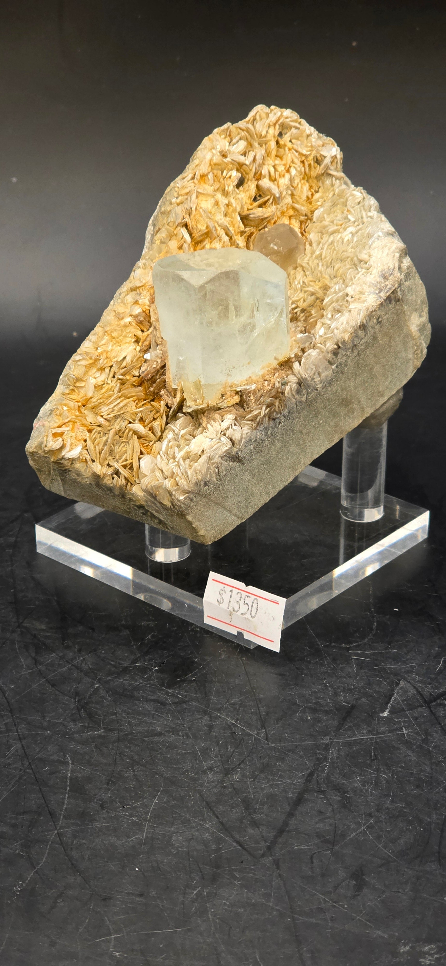 Erongo Region Namibian Aquamarine Matrix w/ Beautiful Micha, Quartz, Stunning UV/PL Calcite Coating, and Fluorite.As the primary crystals