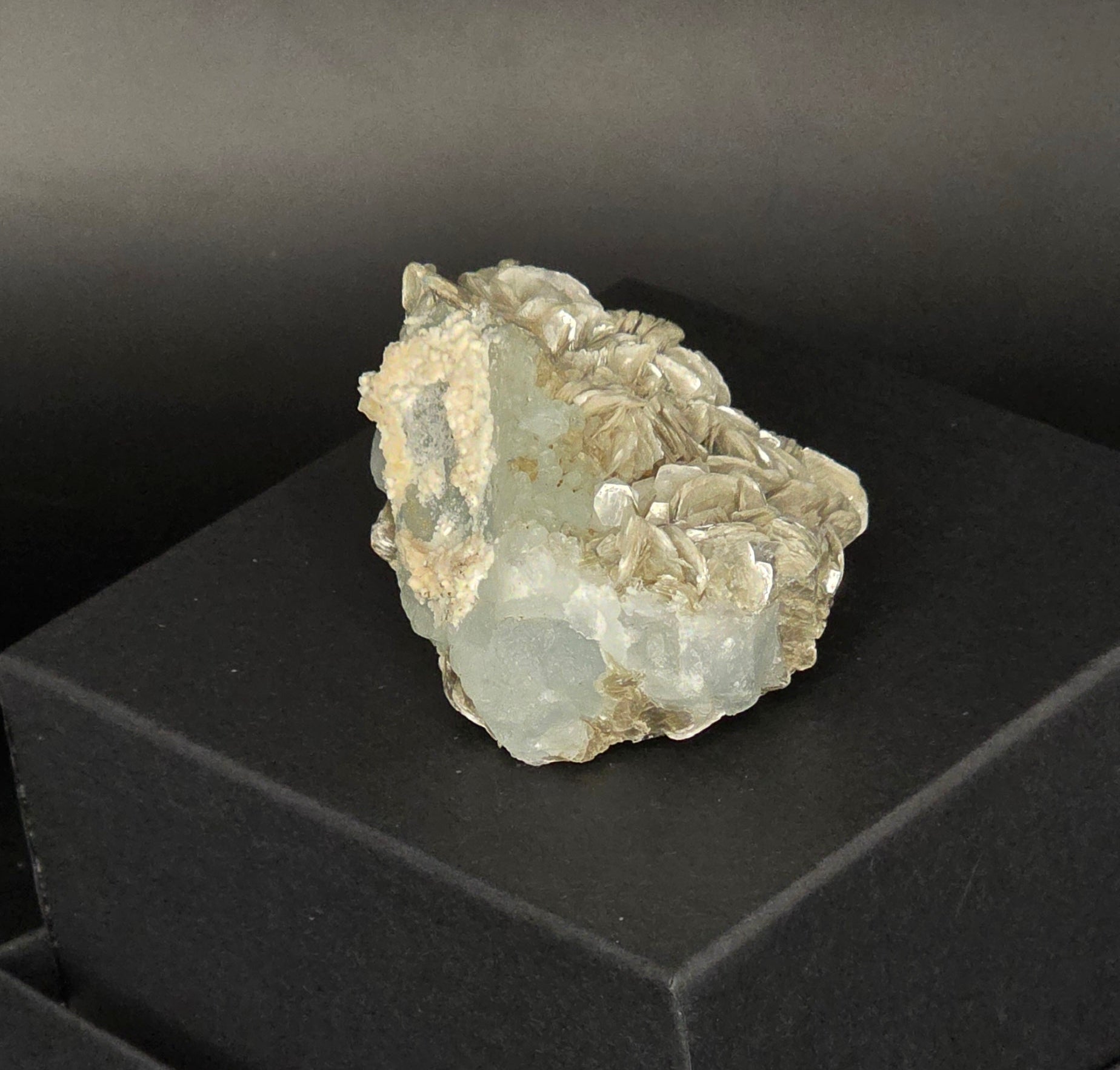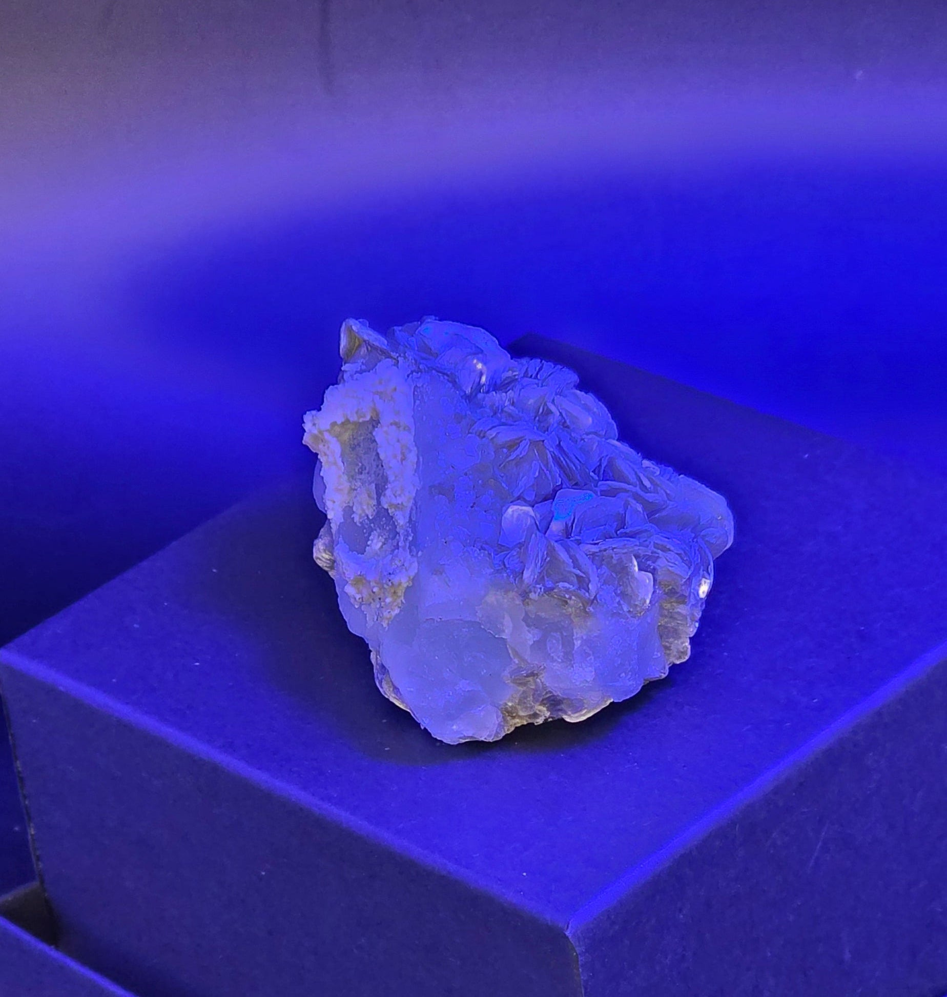Erongo Region Namibian Aquamarine Matrix w/ Beautiful Micha, Quartz, Stunning UV/PL Calcite Coating, and Fluorite.As the primary crystals