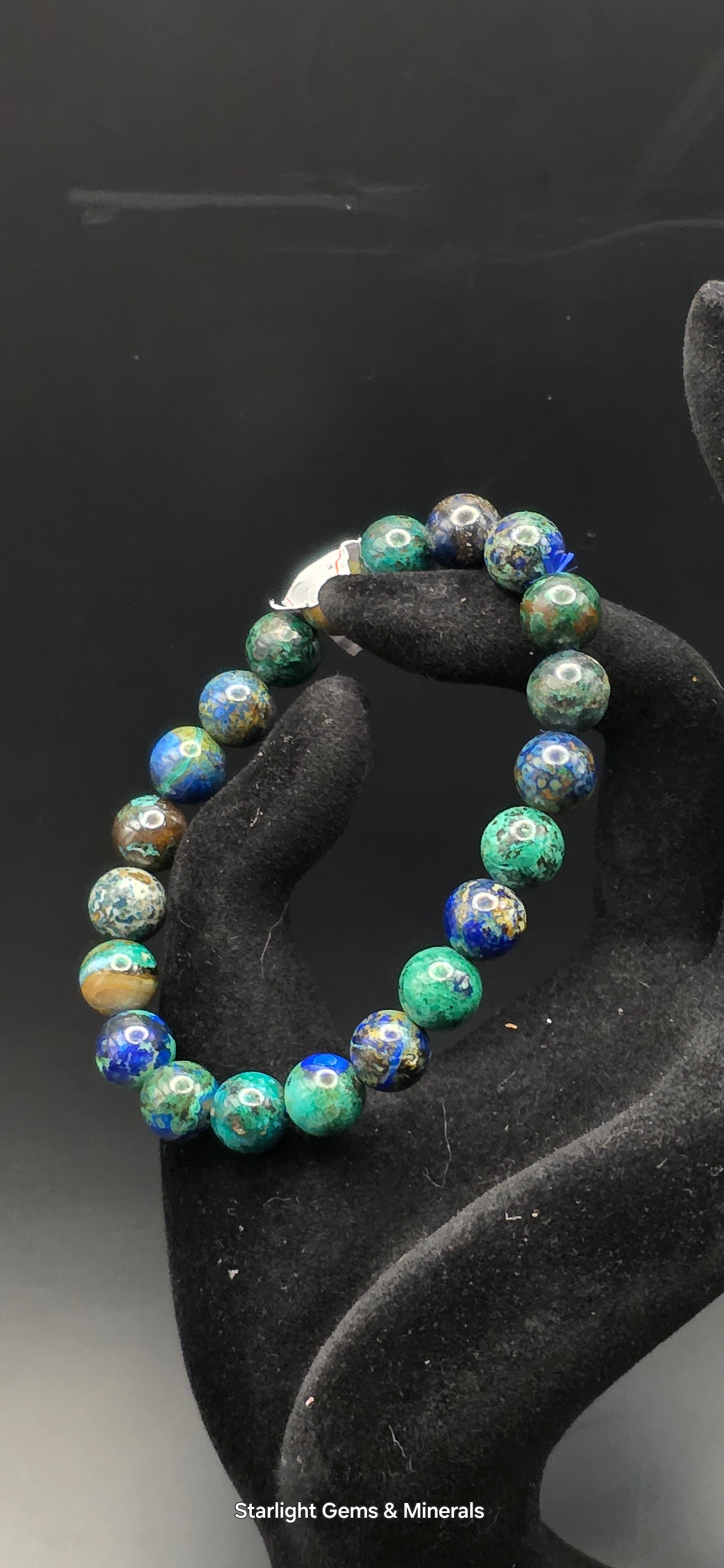 Because the Azerite crystal and Malachite mineral matrix are highly polished, they are physically safe unless broken.