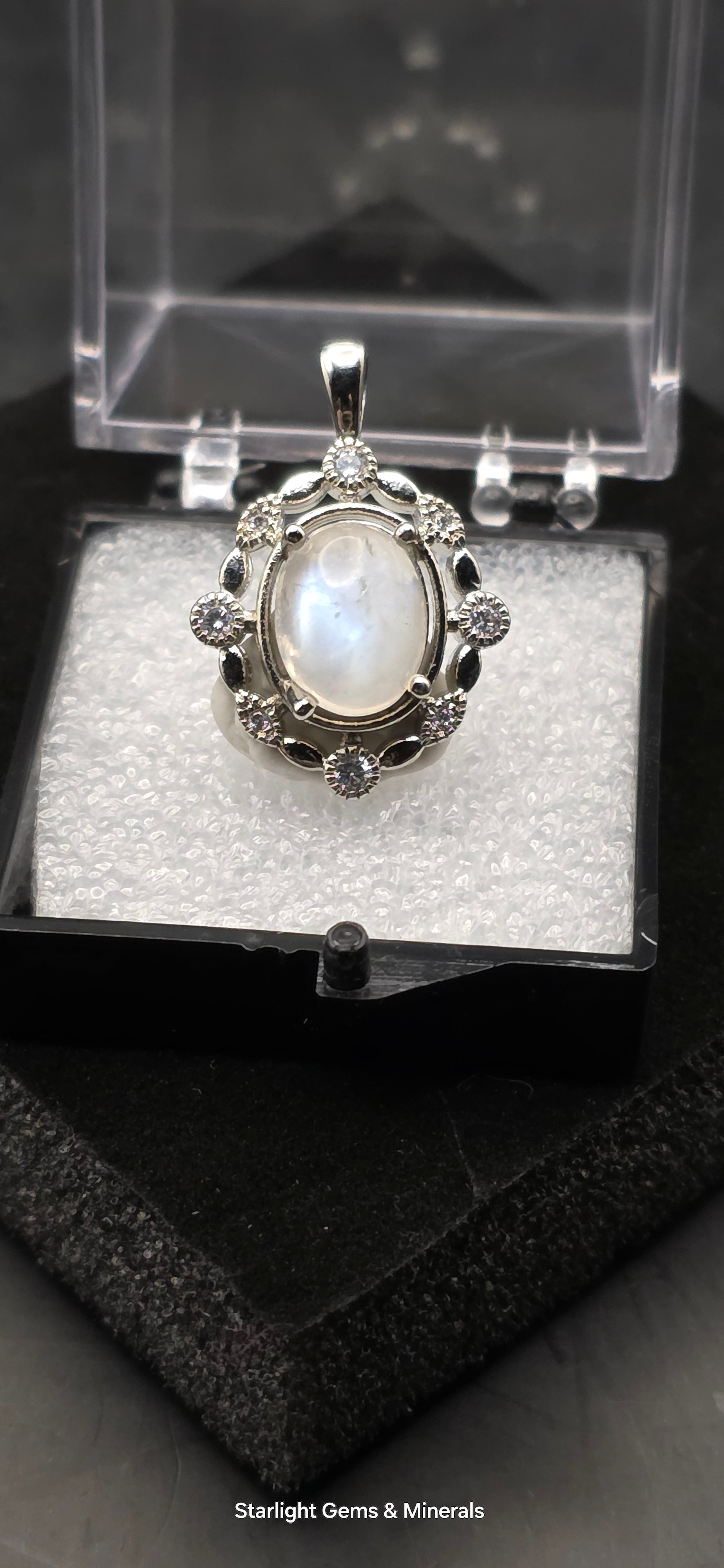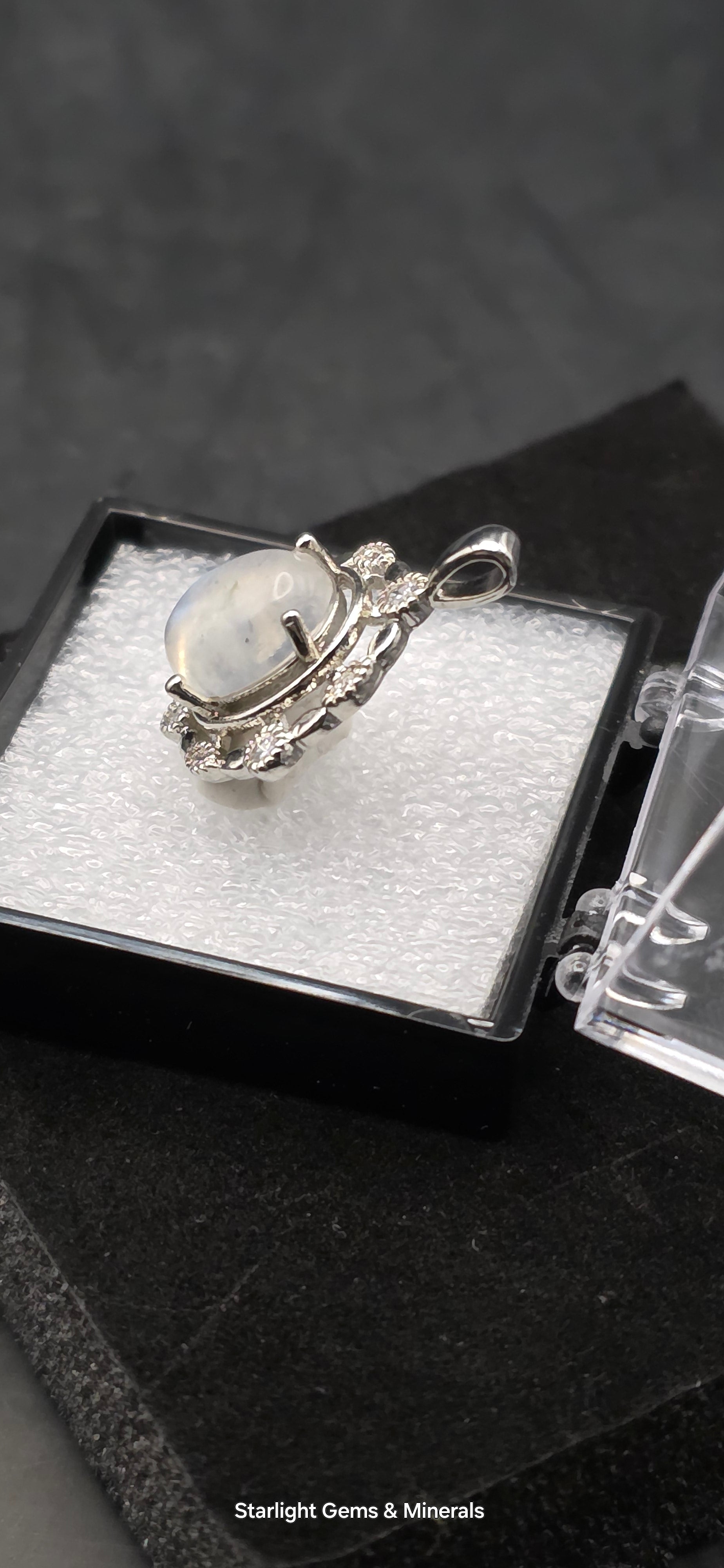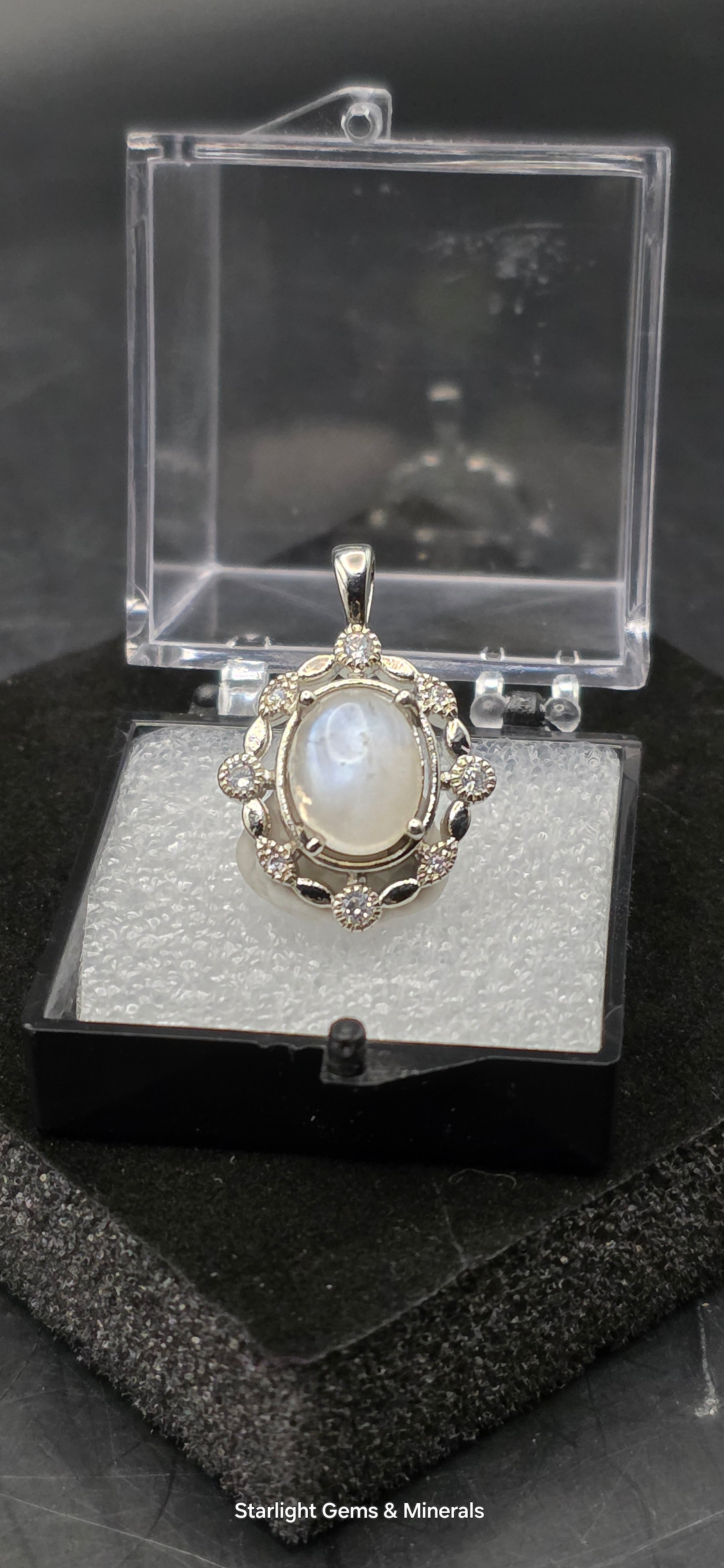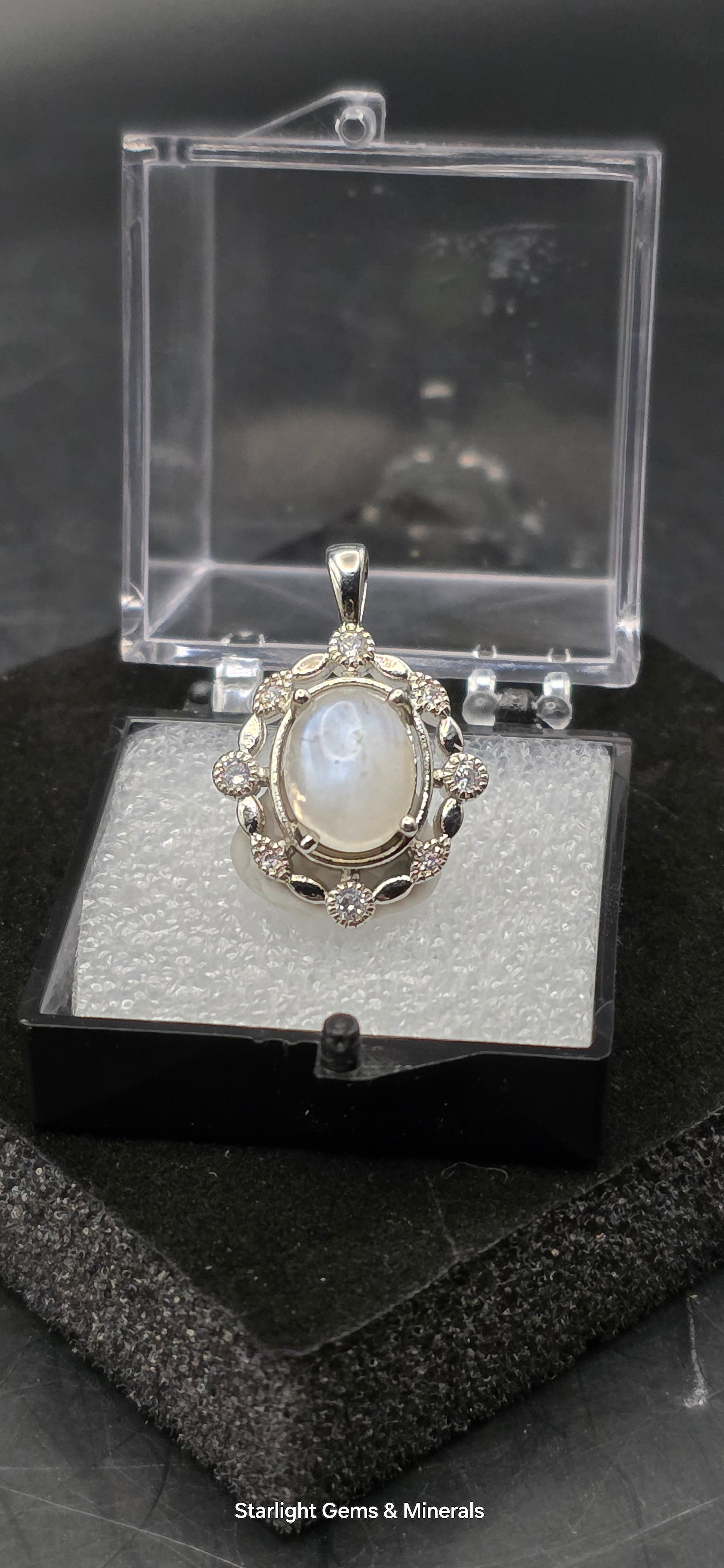 Silver Plated Victorian Moonstone Pendant w/Quartz Facets!