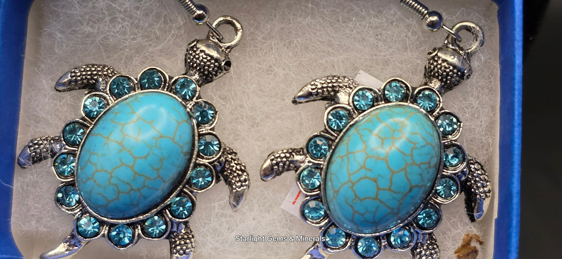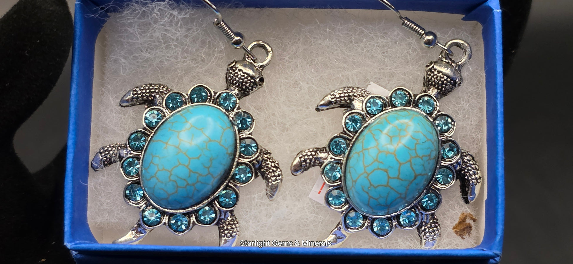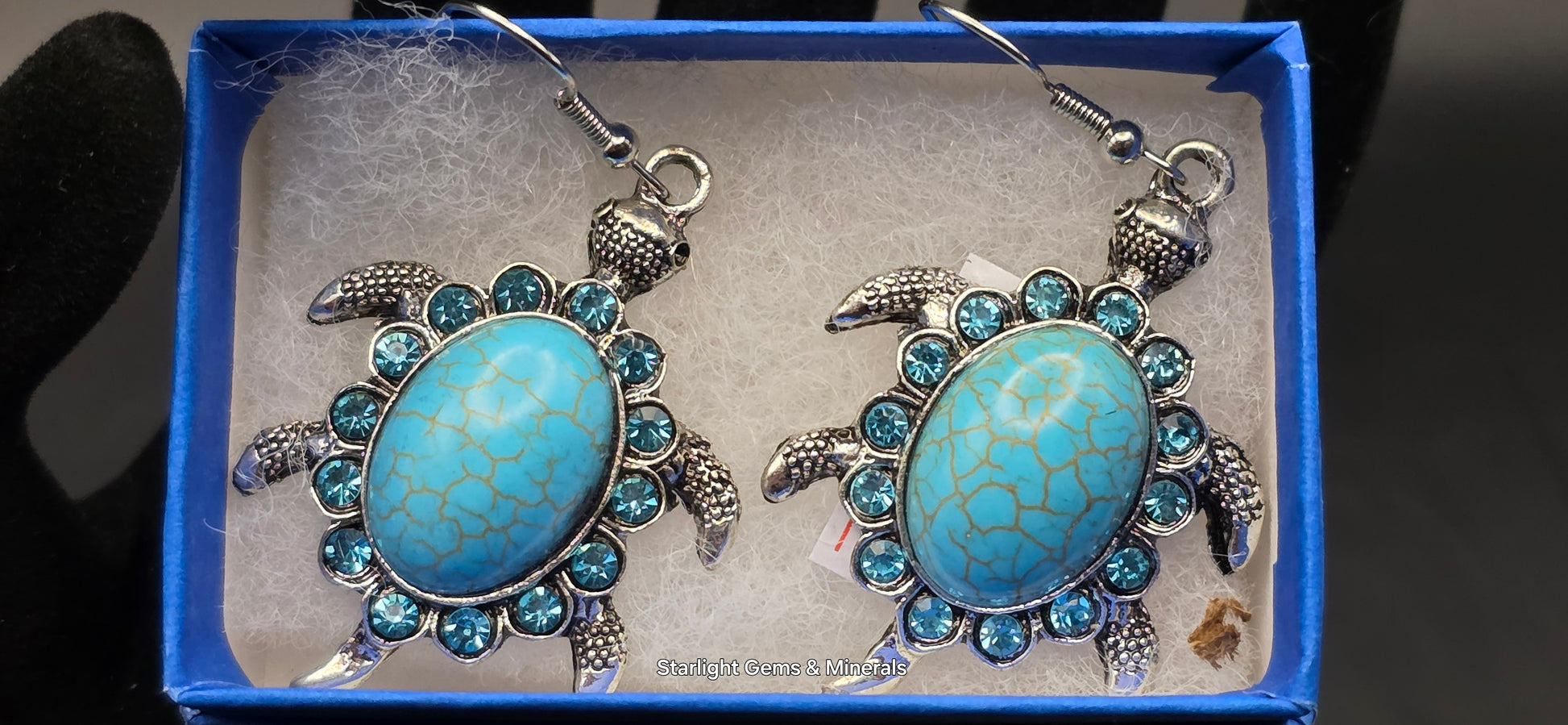Beautiful Silver Plated, Turquoise Turtle Earrings With Stunning Synthetic Aquamarine Facets!